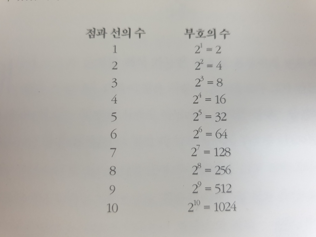 두가지 부호는 그게 총 몇번 조합되어있는지에 따라서 무수히 많은 문자를 표현할수있다고합니다