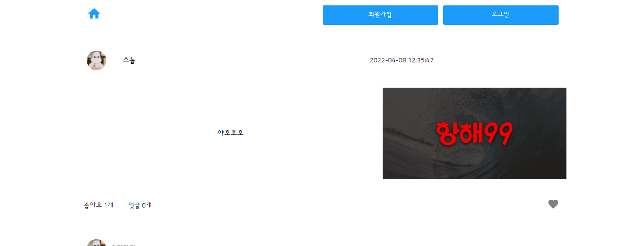 - 게시글 하나는 작성자, 작성 시간, 이미지 미리보기, 텍스트 내용으로 구성