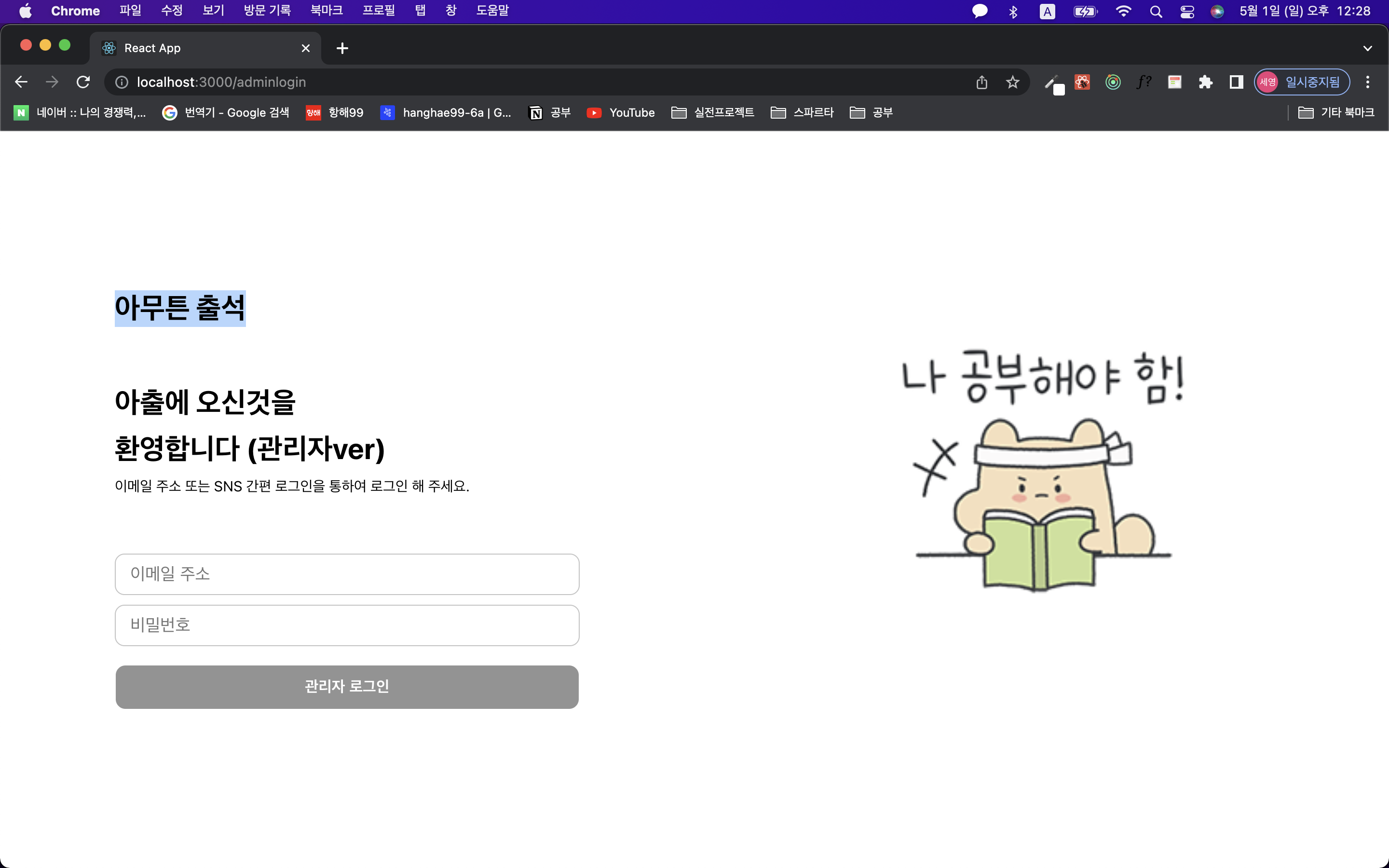 관리자 로그인버튼은 api 명세서에 작성된 주소로 이메일 주소의 정보와 비밀번호를 보내줍니다