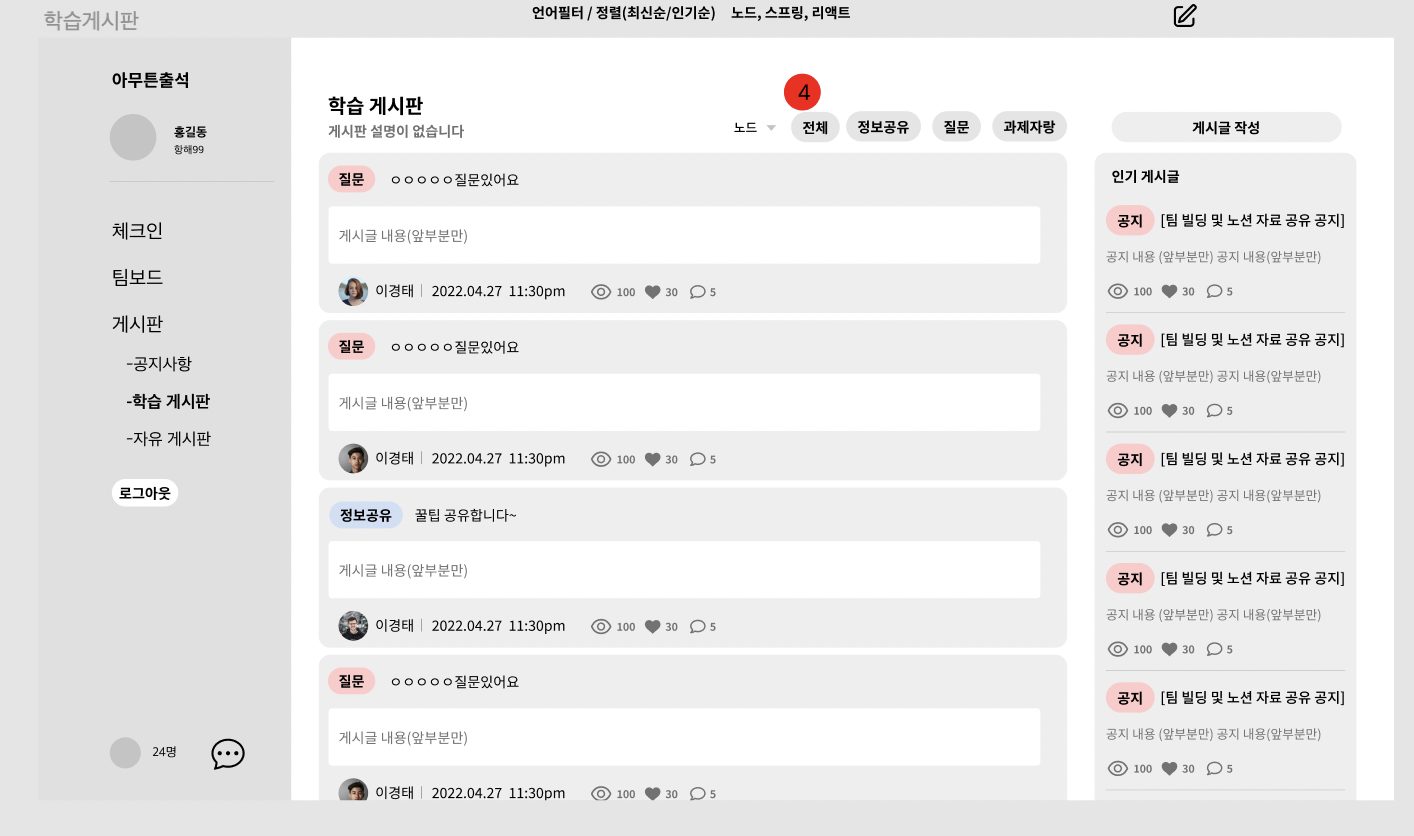- 공통 게시판(공지사항, 로드맵, 히스토리, FAQ 등)