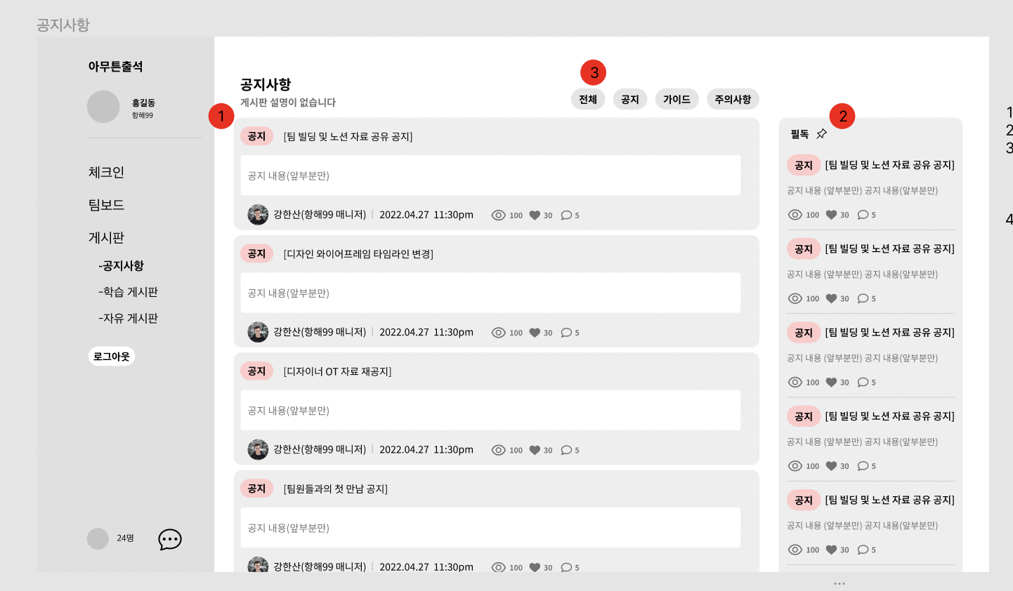 - 단순 체크인 기능만 있어서 공지사항은 타 채널에서 확인해야하는 번거로움.
