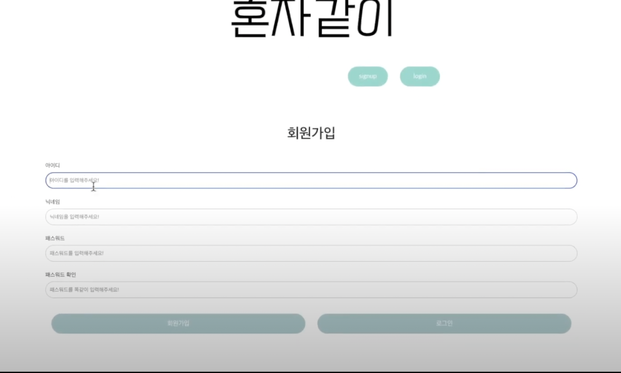 아이디와 닉네임 패스워드를 입력받아 서버에 보내서 저장하는 회원가입페이지입니다