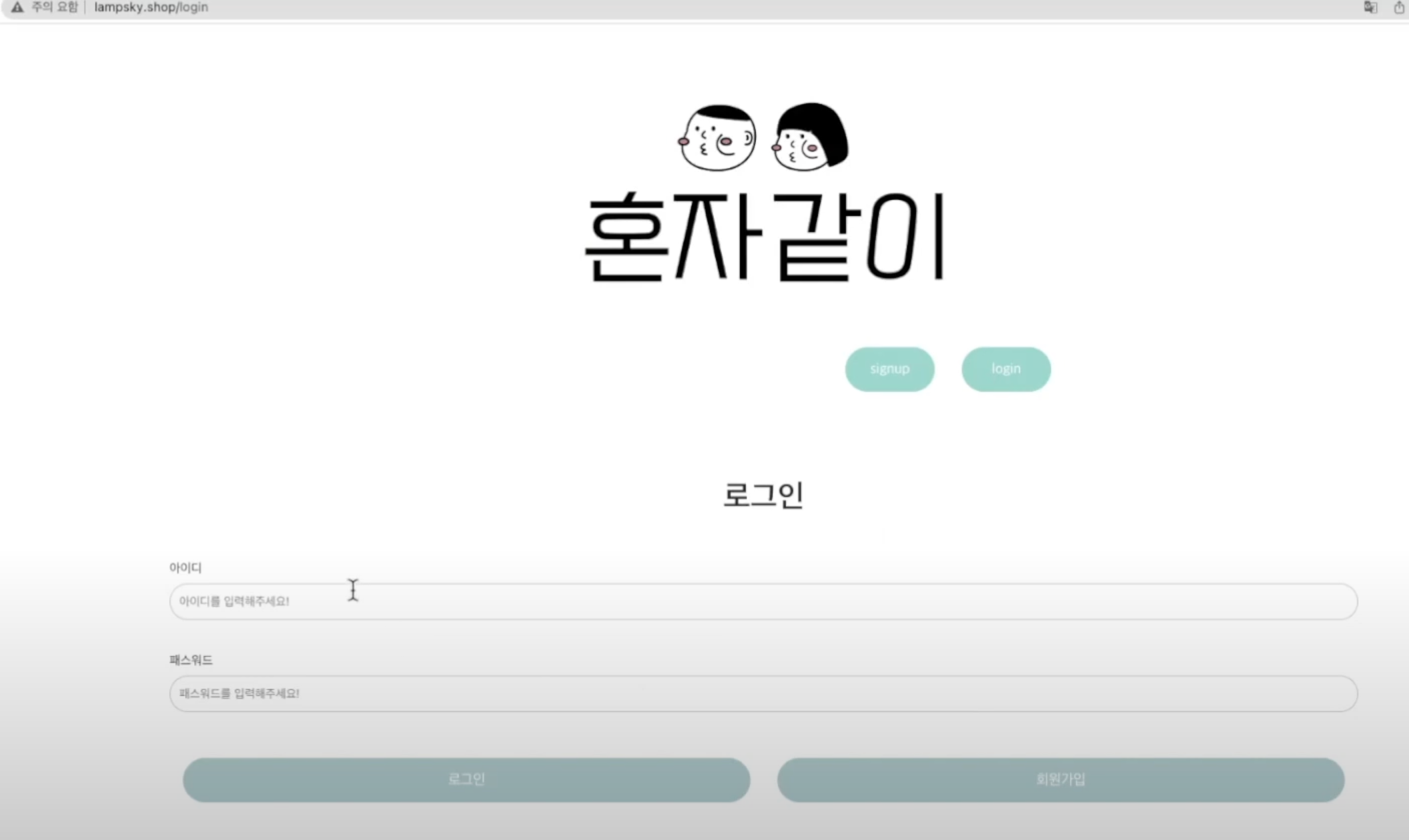 서버에 저장되어있는 아이디와 비밀번호를 입력하면 로그인이 되는 로그인페이지입니다