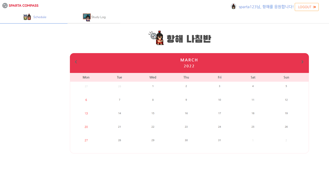 2. 디테일 사이트 ( 해당 요일 보는 페이지 ) : 일주일중 하나의 요일을 클릭하면 들어갈수있는 페이지입니다